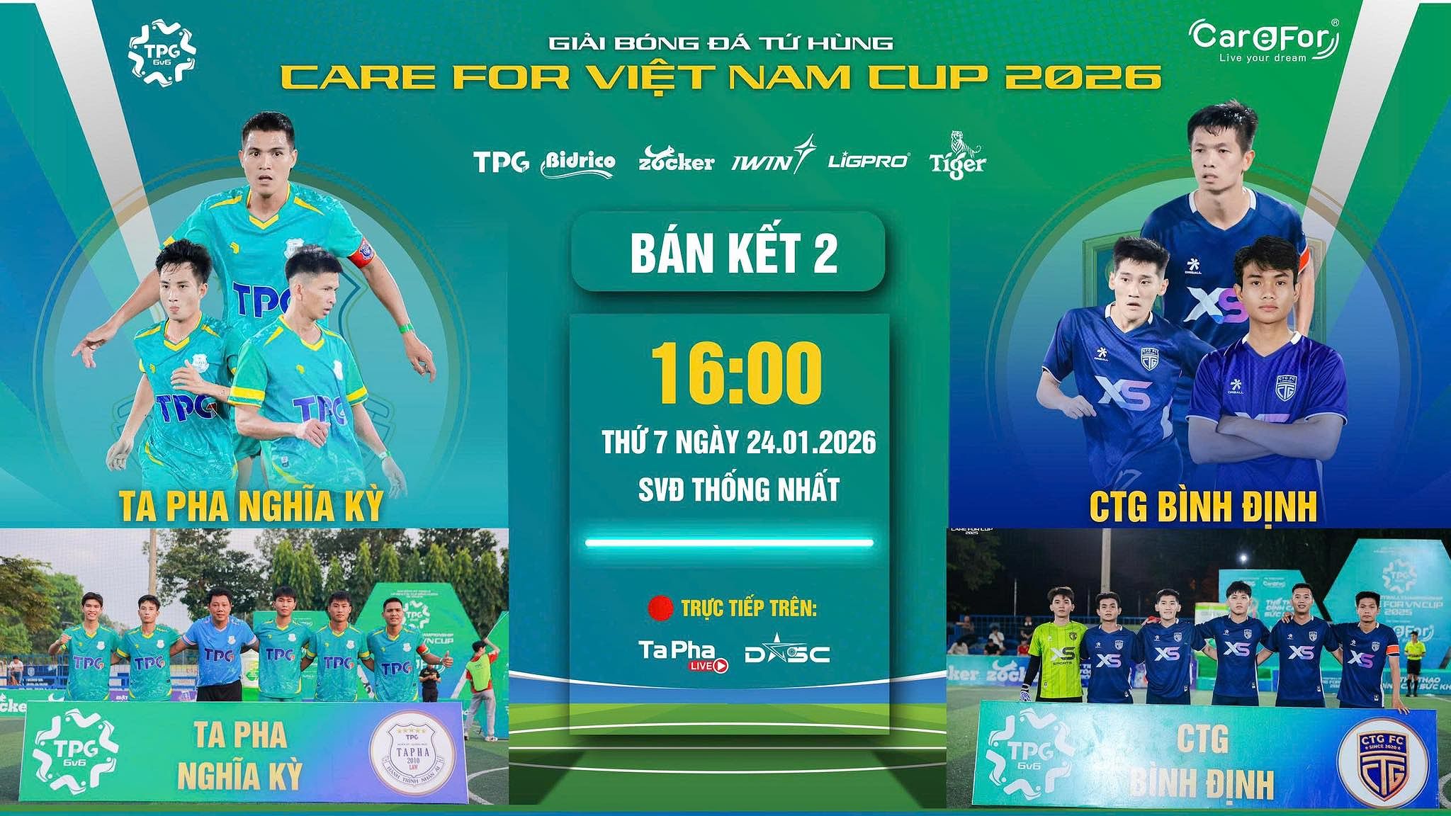 Vào lúc 16h00 ngày 24/01/2026, sân vận động Thống Nhất sẽ tiếp tục bùng nổ với trận Bán kết 2 giữa TaPha Nghĩa Kỳ và CTG Bình Định. Đây được xem là cuộc chạm trán mang đậm màu sắc “ân oán”, nơi hai đội bóng không chỉ tranh chấp tấm vé vào chung kết mà còn chiến đấu vì danh dự và những ký ức đối đầu đầy kịch tính.