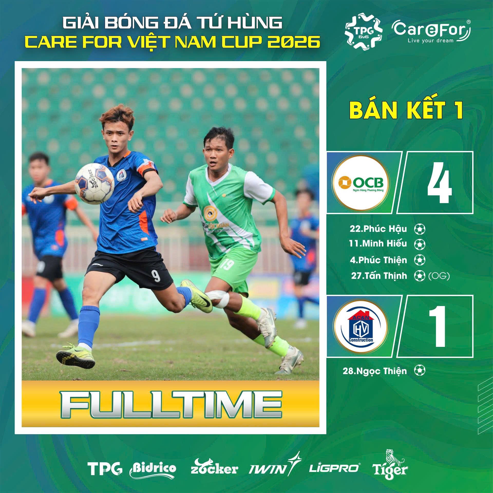 Vượt qua những đối thủ nặng ký sau loạt trận Bán kết đầy kịch tính, OCB Hồ Chí Minh và Ta Pha Nghĩa Kỳ đã chính thức giành lấy hai “tấm vé vàng” để góp mặt trong trận Chung kết giải bóng đá Tứ hùng vô địch các CLB Đồng hương – Care For Việt Nam Cup 2026.